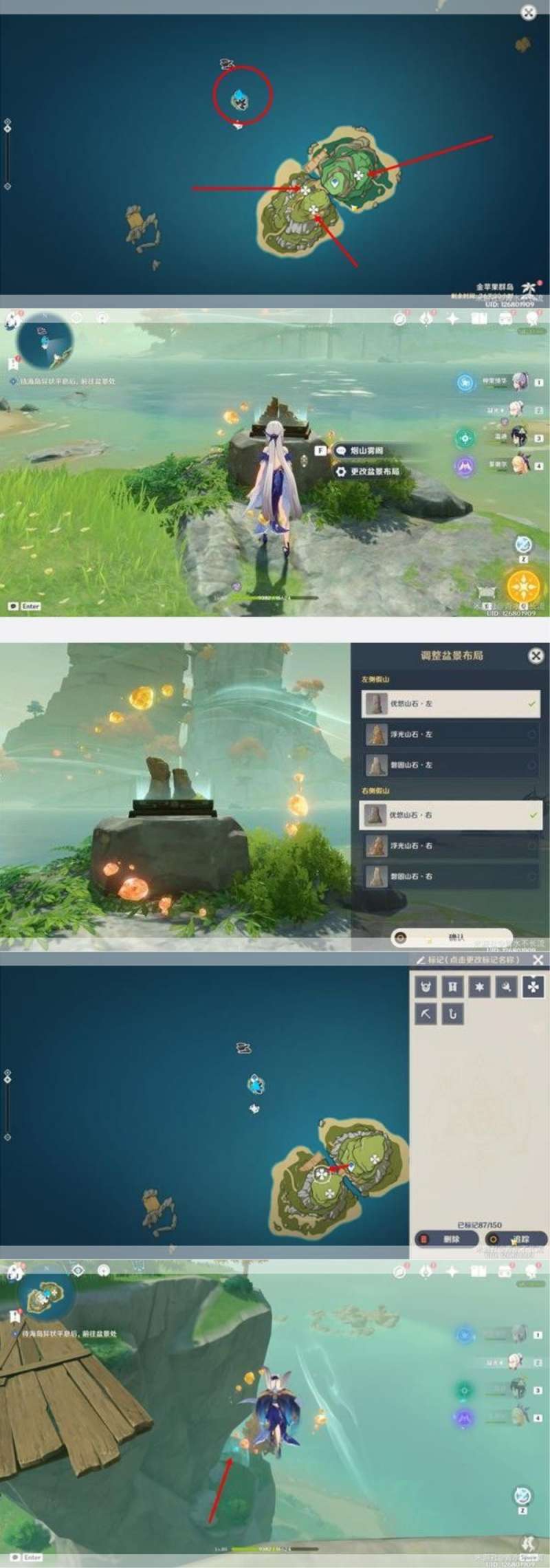 第五步,继续更改盆景布局,左右两侧选择【浮光山石】