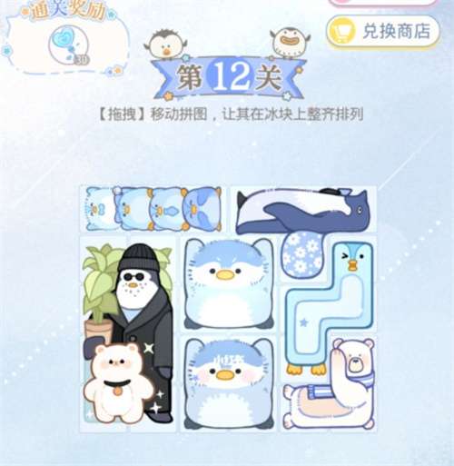 还可以感受到冰原拼拼乐这个活动的乐趣,它主要是一个拼图类型的小游戏来帮助小企鹅们完成庆典委托,再把收集好的道具冰晶糖果达到一定数量之后,就可以去商店中兑换奖励啦。