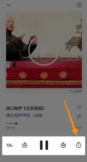 2、然后选择要听的音频,点击右下角时间图标,如下图所示。