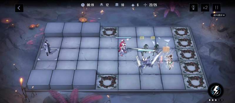 第二波在地图中间,我们直接给女仆一点能量和安一起堵门,等带核心的精英怪出来,直接开大清理。