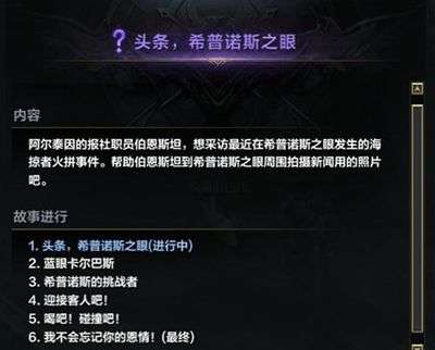8、前往格拉比斯度假村,依据指引完结岛上悉数使命,0难度,一起接取到接连紫色系列使命:头条,希普诺斯之眼。