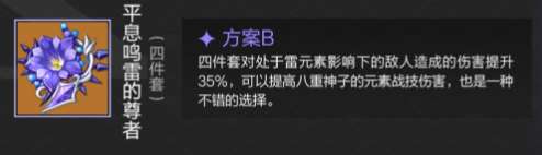 四件套对处于雷元素影响下的敌入造成的伤害提升35%,可以提高八重神子的元素战技伤害,也是一种不错的选择。
