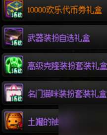 礼盒内容:1万欢乐代币券+名门猫咪装扮套装+高级克隆装扮套装+魔盒10个+武器装扮礼盒3个。