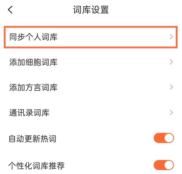 第三步,在词库设置页面找到【同步个人词库】。