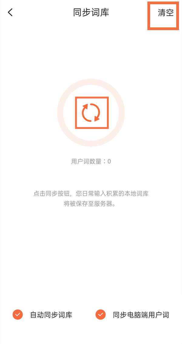 第四步,在同步词库中,设置右上角的【清空】即可。