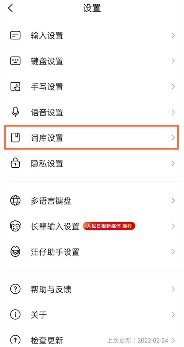 第二步,在设置页面选择【词库设置】。