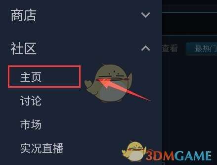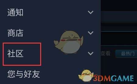 1、首先进入steam,打开左侧边栏,展开“社区”。