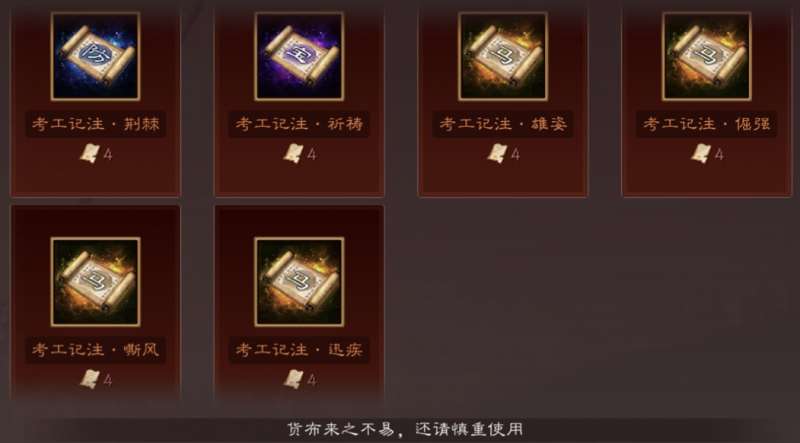 想要在游戏中获取考工残卷的方法不多,毕竟这是一个稀有物品。所以我们的首要目标就是提升实力并且积攒资源,这样在商店中就有足够的铜币和金装去换成金货布了。 End