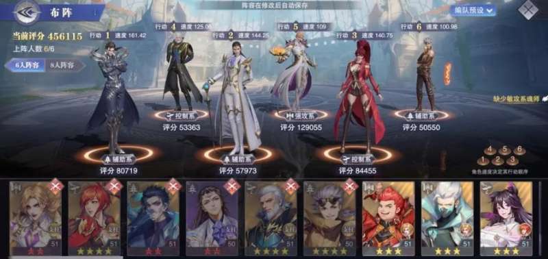 游戏中还有一个比较热门的阵容,由绛珠、胡列娜、波塞西、白沉香、戴沐白以及尘心组成。绛珠是游戏中的治疗角色,在战斗中可以为我方队友进行治疗,回复生命属性。胡列娜能给周围的敌人随机造成伤害,波塞西是一个群攻型的角色,他可以给敌方造成大量的法术伤害,再搭配上尘心和白沉香的物理伤害,可以说是一个不容错过的阵容。