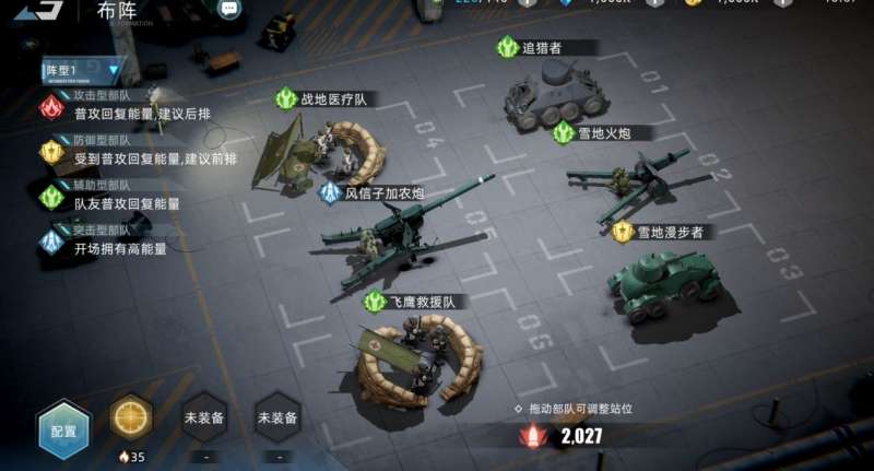 配队阵容追猎者+飞鹰救援队+雪地漫步者+战地医疗队+雪地火炮+风信子加农炮