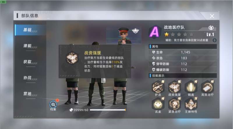 同时,雪地漫步者和战地医疗队则是双核心的补足,集治疗、驱散、回能于一体,不仅能更好的帮助其它角色输出,还能提供客观的回复和辅助能力。其中,雪地漫步者技能【激动突袭】对前排的输出能力颇为可观,还能分担一部分前排承伤任务。