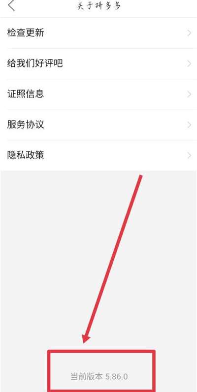 第四步:在关于拼多多页面,即可查看下方的版本号。