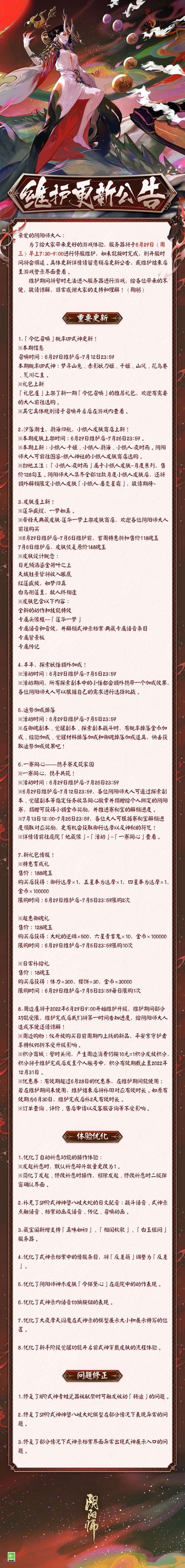 阴阳师维护公告 6月29日更新一览