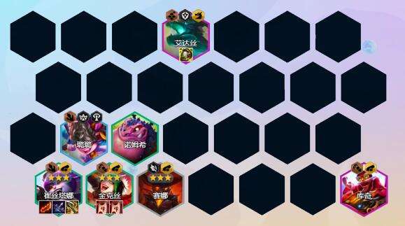后期阵容:5-1或者5-2回合升8人口,补上娑娜阵容成型,搜一波卡搜到二星艾达丝、娑娜、库奇就行,5阶段后期看情况如果血量好能保证赢其他人的前提下准备人口补巴德,5阶段和6阶段选秀有强袭炮手纹章、凌风、静止法衣、基克的先驱等装备一定要拿,再次补强阵容强度。