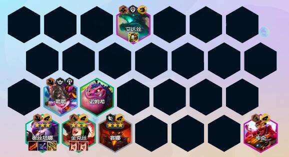 4回合:因为是赌狗阵容,在追到三星崔丝塔娜、金克丝、赛娜之后,4-2或者4-3回合拉7人口,小搜一波,搜到一张艾达丝和库奇即可停手,此时阵容是4强袭炮手,如果三个圣坛有关于强袭炮手的那么就有机会凑5强袭炮手,4阶段如果顶得住就存钱上8人口,顶不住就多搜一下把艾达丝搜到二星。