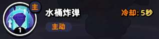 每隔5秒掷出一个水桶,水桶落地后会爆炸对中范围敌人造成100%攻击力的伤害生成水漩涡每秒会对周围敌人造成50%攻击的伤害并附加冻伤效果,降低5%移速和攻速,持续5秒(可叠加5层),水漩涡可存在3秒。