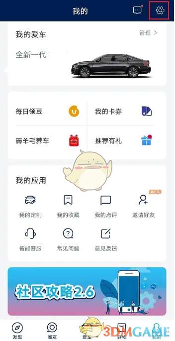 1、在上汽大众app我的界面点击右上角“设置”