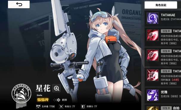 2、红卡位:SSR星花或sr苍叶,和红卡狙击队的思路基本一致,寻找能提供大量红卡的角色即可。