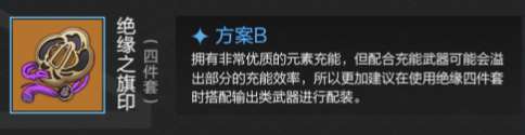 拥有非常优质的元素充能,但配合充能武器可能会溢出部分的充能效率,所以更加建议在使用绝缘四件套时搭配输出类武器进行配装。