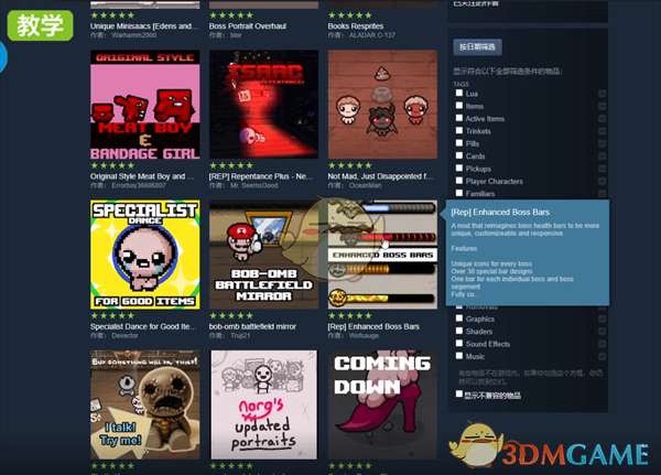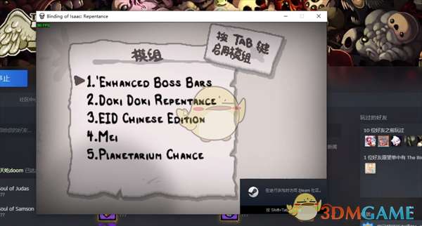 3、以以撒的结合和暗黑地牢为例,这些游戏的mod要在游戏内部再次勾选使用,在以撒的结合中点击模组并勾选下载的模组即可使用该mod,不过有些mod需要重启才能看见使用。在暗黑地牢中可以点击存档旁边的模组选项,在模组中可以勾选使用对应的mod,虽然每个游戏的mod勾选地点不同,但是创意工坊的mod一般都是在存档选项处勾选使用。