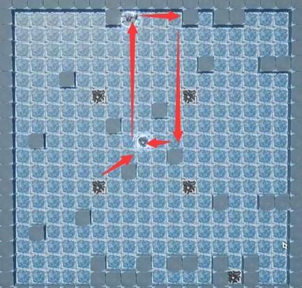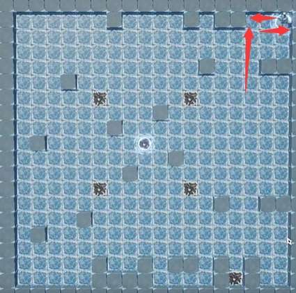 1、首先需要将在右下角的小石头按照箭头指示一直走,然后移动到最右上方的位置。