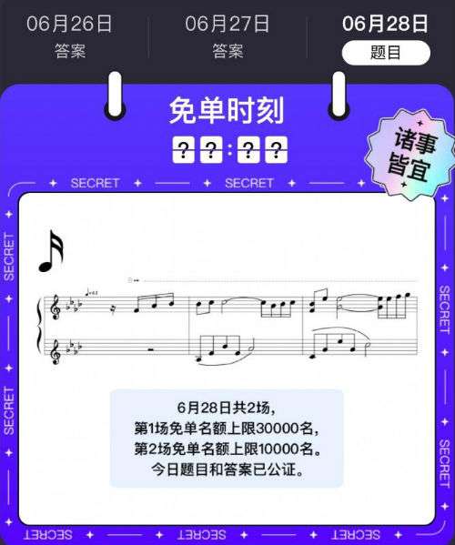 从饿了么官方发布的图片线索来看,这是一个五线谱,唱一下哆瑞咪发唆拉稀多。上排黑点有10个,竖线8条。下排黑点19个,竖线20天。所以有可能6月28日饿了么免单时间在10:08和19:20,也就是时间二可能性大一点。