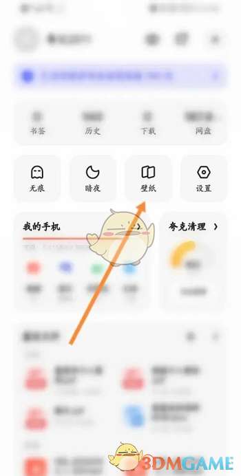1、打开夸克浏览器,在我的界面中进入壁纸。