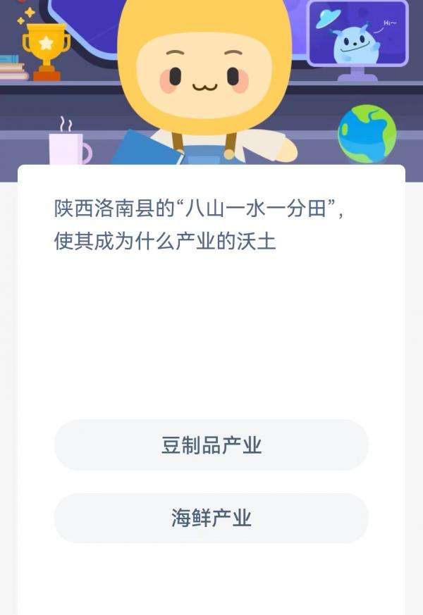 2022支付宝蚂蚁新村6月30日的题目为:陕西洛南县的八山一水一分田使其成为什么产业的沃土?豆制品产业还是海鲜产业呢?很多小伙伴可能还不太清楚。下面小编就为大家带来了正确答案分享,希望能帮助到你。