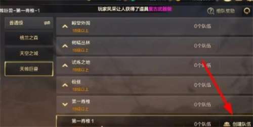 3、进入组队频道以后,点击箭头所指的【创建队伍】。