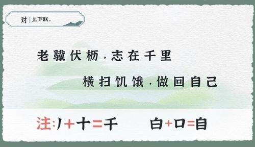 2、上联是老骥伏枥,志在千里,下联是横扫饥饿,做回自己。