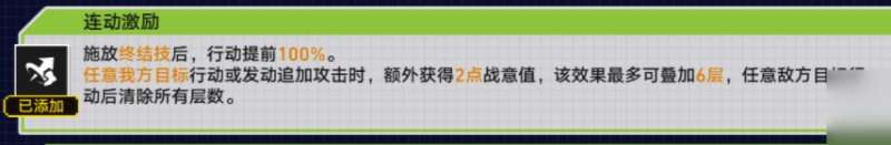 ①战术核心就是让我方角色连续行动。同个角色常规回合之后插入终结技可以算连续行动,但是追加攻击没有行动判定不能计入这个战意机制。