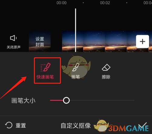 4、点击快速画笔,设置画笔大小。在需要抠图的物品上画上一两笔,就可以快速将整个物体智能抠图下来。