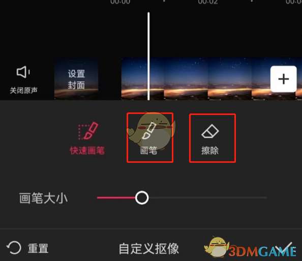 5、如果对智能识别的抠像不满意的话,可以点击画笔和擦除,自由涂抹在物体上,进行抠像。