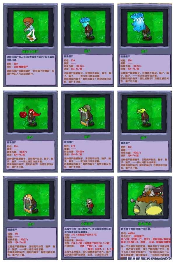 在《植物大战僵尸杂交版》的2.0版本中,存在着各种各样的僵尸敌人。每个僵尸都有自己独特的能力和特点,下面是一份详细的僵尸图鉴,列出了游戏中可能出现的所有僵尸及其特性,以帮助玩家更好地了解它们并制定相应的战术。