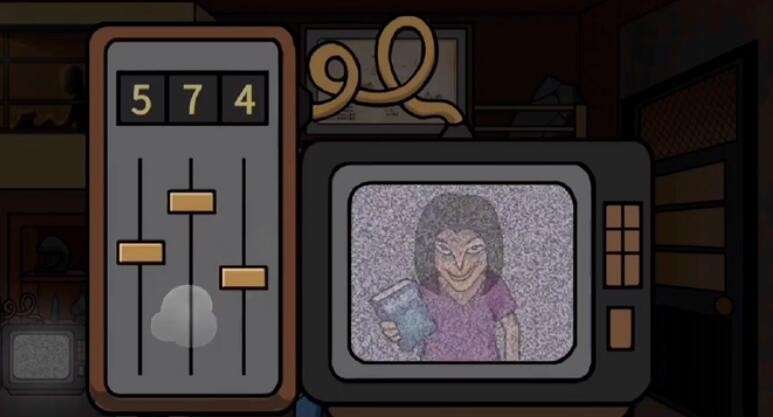 接着点击电视机将左边的频率调成574,出现一个紫色的漩涡,将获取的粑粑放进去,获取一把钥匙