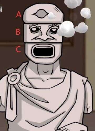 首先点击石像,然后将石像的头分为ABC三部分(从上往下)