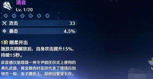 2、满级清音能够提升下攻击力加成,平民玩家可以用下。