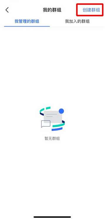 第二步:在打开的页面中,点击右上角的【创建群组】。