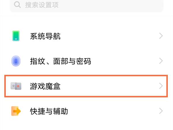 1、打开手机设置,选择游戏魔盒。