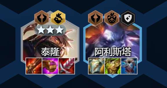 阵容缺点:比较容易被针对,如果两角落放远程棋子就能极大降低泰隆的输出效率。还有泰隆脆非常怕控制,被控就等于慢性死亡。