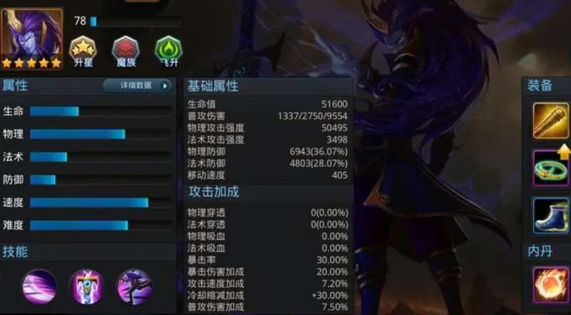 他拥有两种种族效果,第一种是魔之护,在其达到四星的时候会获得种族被动技能,对佛族角色造成的伤害可提高百分之六。第二种是飞升效果,金角使用普攻的最后一击时,有概率让敌人被沉默,无法释放出任何的技能。在实战过程中,金角比较推荐培养物理强度属性,让其移速与攻速变得更快,能够具有千里追杀残血的能力。玩家需要把握好他三技能的回避效果,虽然只有一秒钟,但是可以让我们从团战里无伤而退。