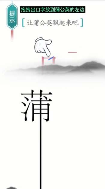 4、再把【口】放到【蒲】的左边,然后吹一口气把蒲公英吹飞。