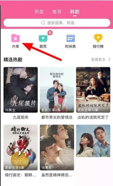 3.点击“片库”选项,如下图所示。