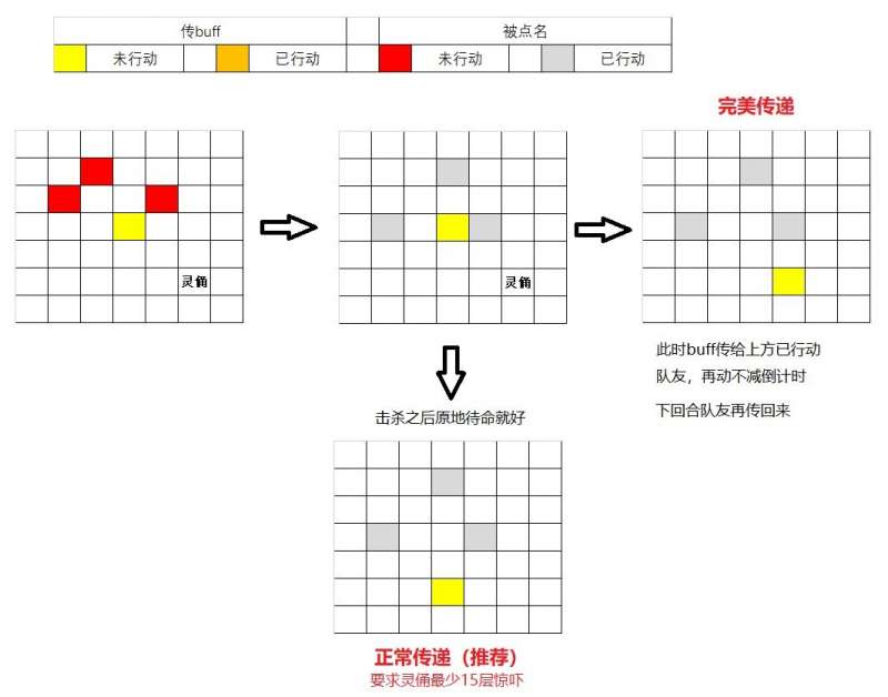 1.该回合不杀灵俑,则传buff的人先移动到横竖没有友军的格子,其余身上有buff的站在他上下左右把buff传过去