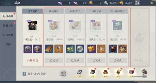 开服第三日与第二日相同,需要先通过完成每日活动获取经验,解锁新主线任务。建议先独自完成“同业委托”,再组队完成巡航舰队、扬帆仪式、幽灵船长三项活动,勇者航路建议做完主线后再参与。