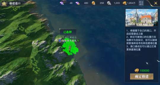 获得许可后就可以前往各大海岸线,寻找可建立港口的地点,玩家可在心仪的海域附近,点击自建港任务“寻路”功能,系统将开启勘探附近可建港点。