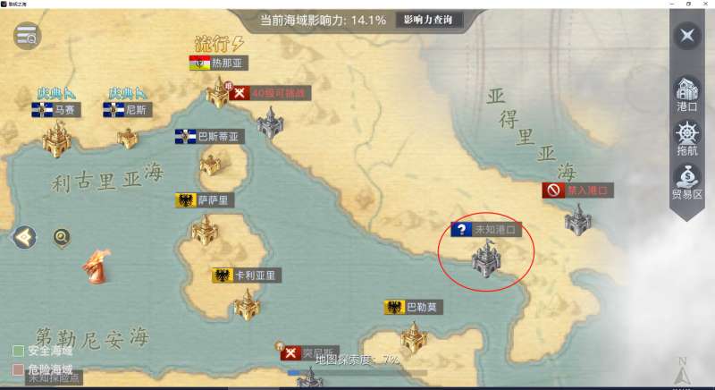 与第一日相同,我们完成主线后,第一时间解锁新海域内的港口。