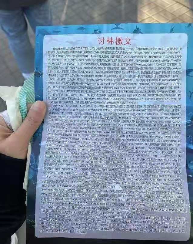 男主原文说的是:长春中医药大学林某某,在与我恋爱期间多次出轨。