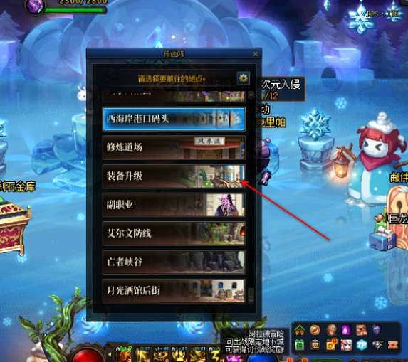 4、进入游戏后传送到装备升级区域。