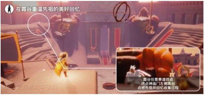 完成方法:今天需要玩家重温回忆的先祖位于霞谷任意赛道终点,神庙门左侧高台。